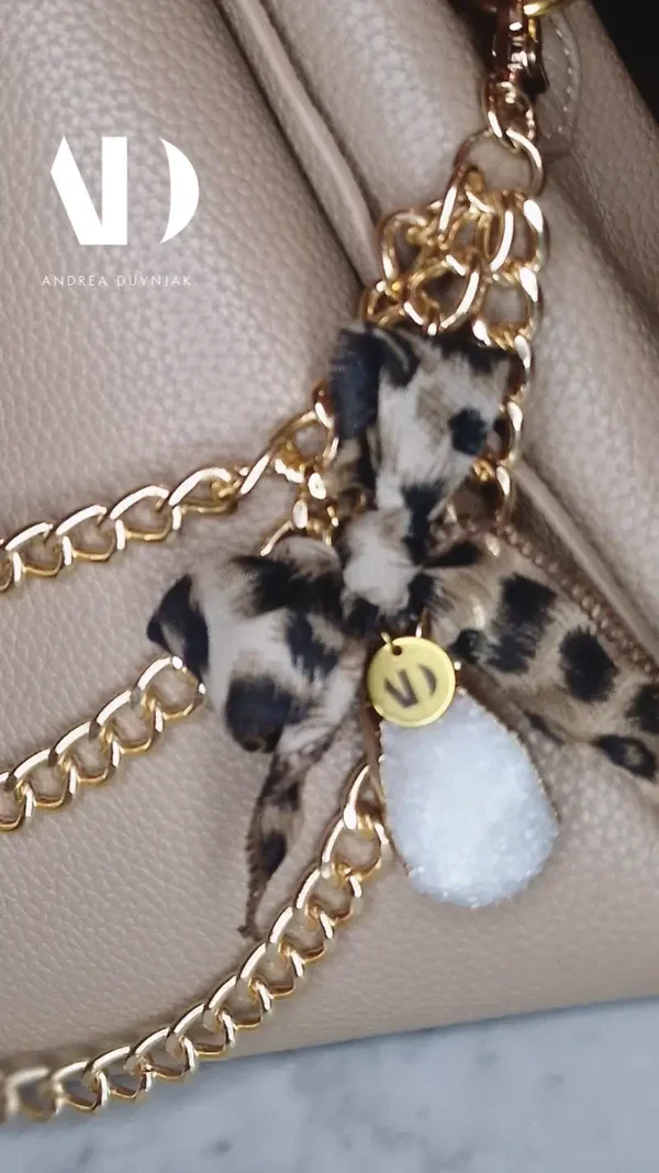 Sabine Bag met Sneeuwkwarts Pendant en tijger strik.