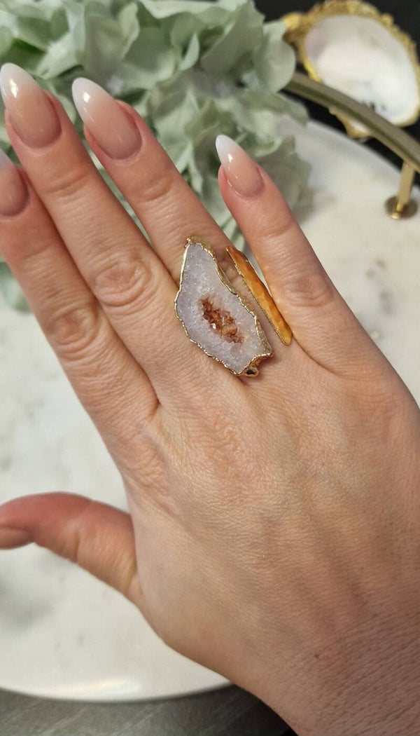 De ring is handmatig te stellen voor elke dikte vinger. De ring is goldplated en heeft een beschermingscoating. Ondanks deze coating raden we aan om contact met water en zeep te vermijden.