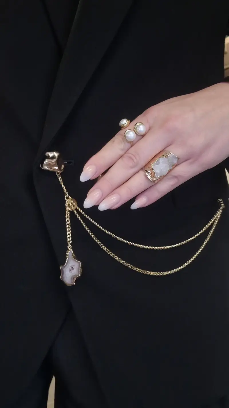 Voeg een vleugje luxe toe aan je wardrobe met de Vanessa Blazer Chain. Deze handgemaakte Chain onderscheidt zich door haar unieke kettingdetail en exclusieve ontwerp van AD Collection. Een ware blikvanger die je look direct naar een hoger niveau tilt. Alleen bij ons verkrijgbaar – shop hem snel en maak een statement!