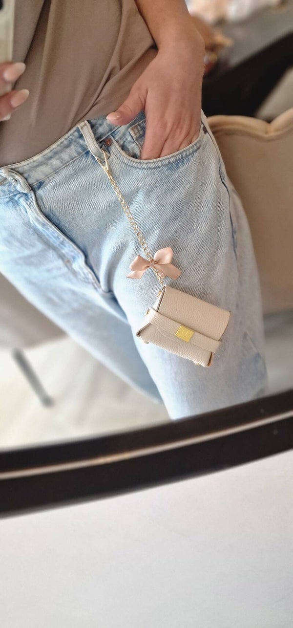 Dankzij het kleine formaat is Tessa ideaal voor je essentials – zoals je pasjes, lipgloss en sleutels – terwijl de gouden chain en het fijne strikdetail zorgen voor een vrouwelijke en speelse touch. Draag ‘m nonchalant aan je jeans, zoals op de foto.